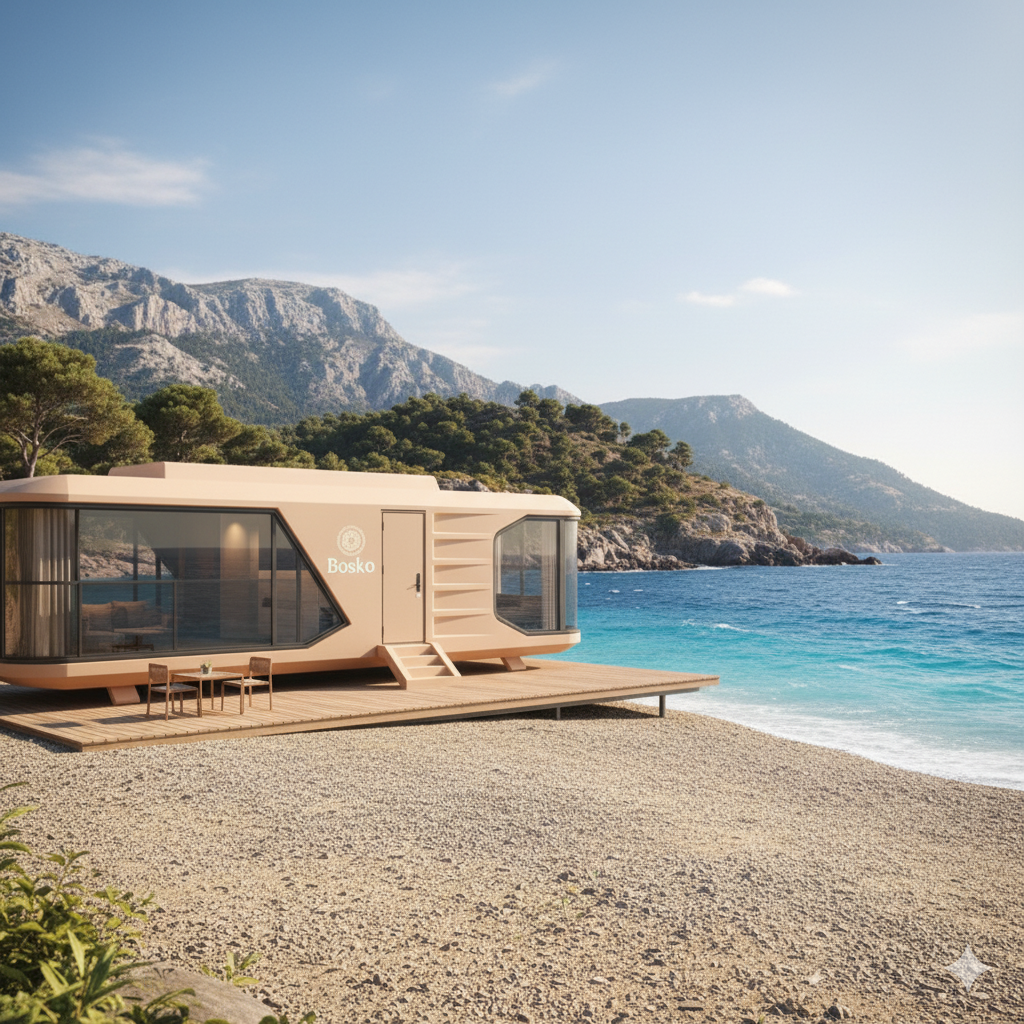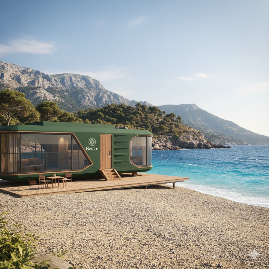 • Arquitectura sostenible: cada cabina Bosko se fabrica con materiales de alta eficiencia térmica y estructura reciclable, reduciendo el uso de recursos y minimizando residuos en cada fase de producción.