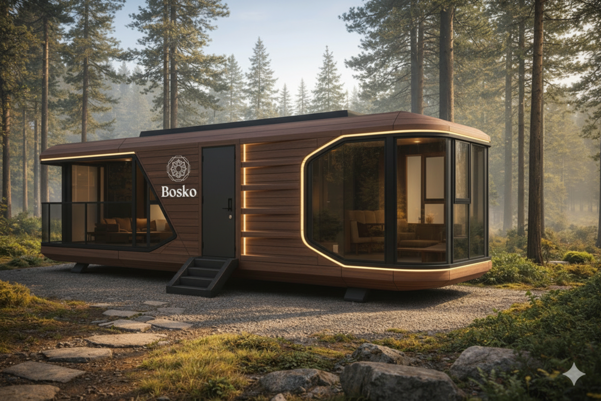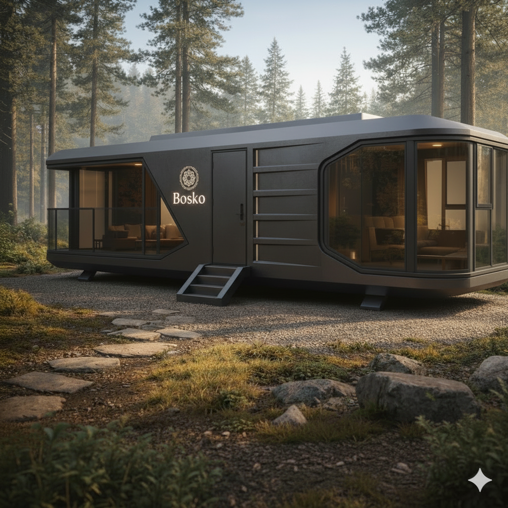 • Arquitectura sostenible: cada cabina Bosko se fabrica con materiales de alta eficiencia térmica y estructura reciclable, reduciendo el uso de recursos y minimizando residuos en cada fase de producción.
